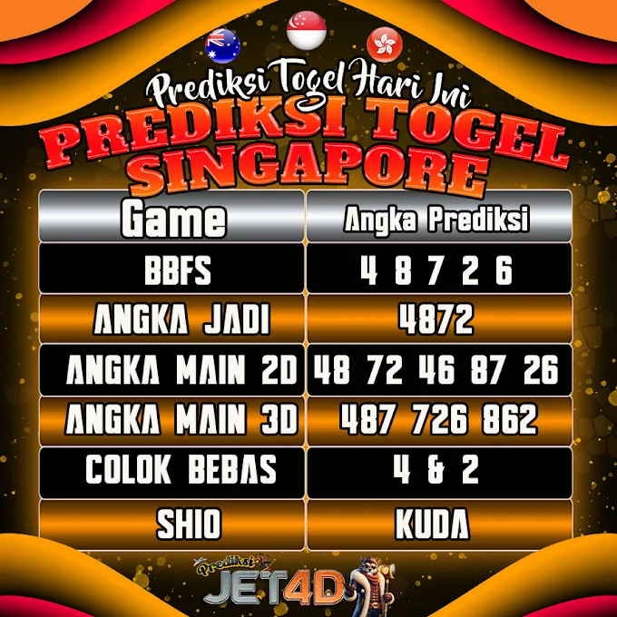 Selamat datang di Prediksi Togel Jet4D, situs terpercaya untuk para pecinta angka! Hari ini, kita akan bahas seputar Togel Singapore (SGP) – salah satu pasaran togel paling bergengsi dan diminati di Asia.