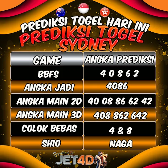 Jet4d Prediksi Togel Sydney untuk hari ini kembali hadir dari Jet4D, memberikan analisis angka yang akurat dan strategi bermain yang tepat. Berdasarkan pola keluaran sebelumnya, statistik harian, serta tren angka terbaru, tim Jet4D telah merumuskan angka potensial yang bisa menjadi referensi para pemain.