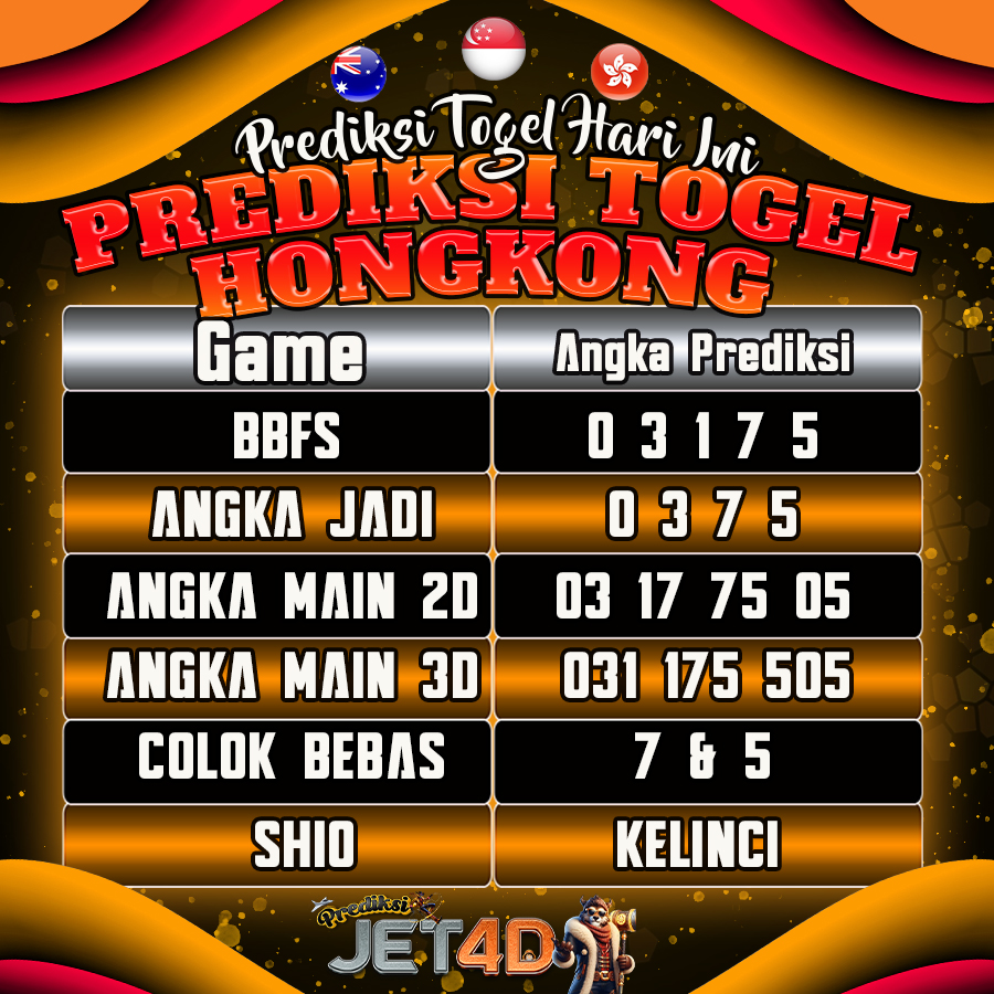 Selamat datang di Prediksi Togel Jet4D, situs terpercaya untuk para pecinta angka! Hari ini, kita akan bahas seputar Togel Hongkong (HK) – salah satu pasaran togel paling bergengsi dan diminati di Asia.
