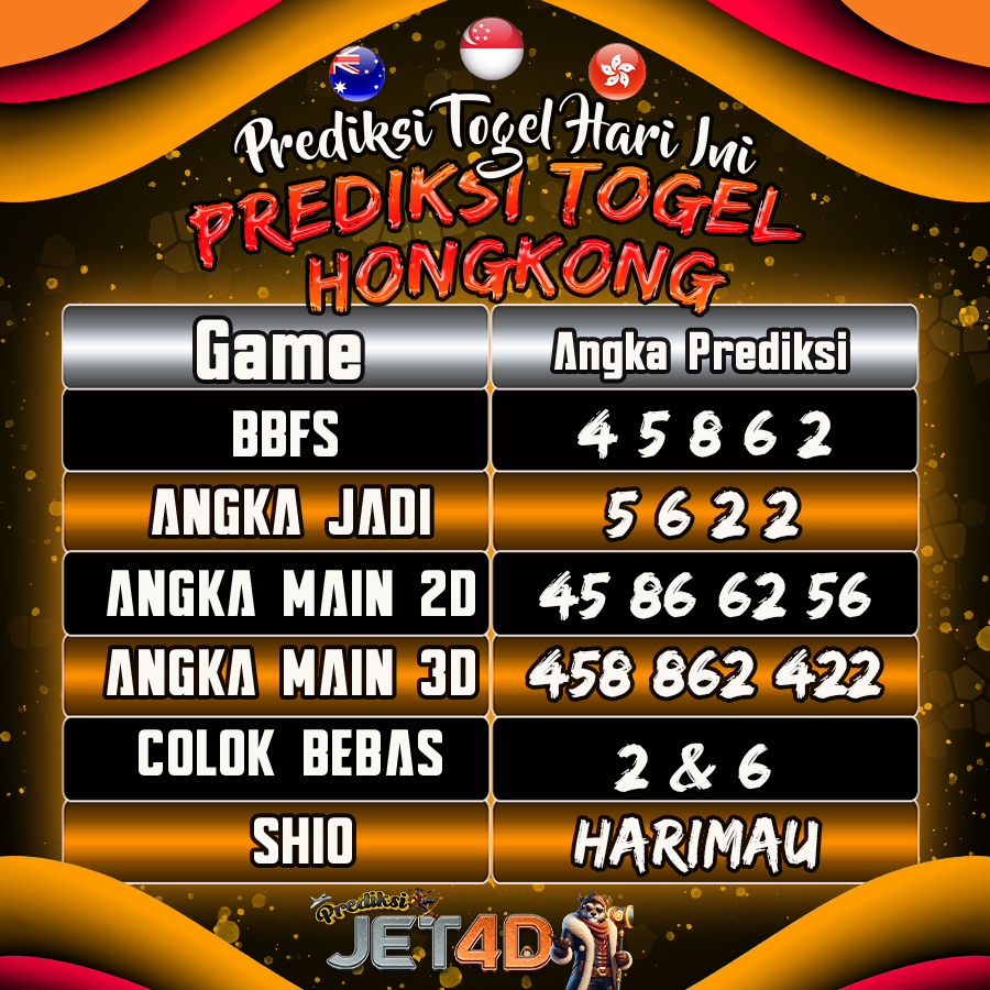 Selamat datang di Prediksi Togel Jet4D, situs terpercaya untuk para pecinta angka! Hari ini, kita akan bahas seputar Togel Hongkong (HK) – salah satu pasaran togel paling bergengsi dan diminati di Asia.