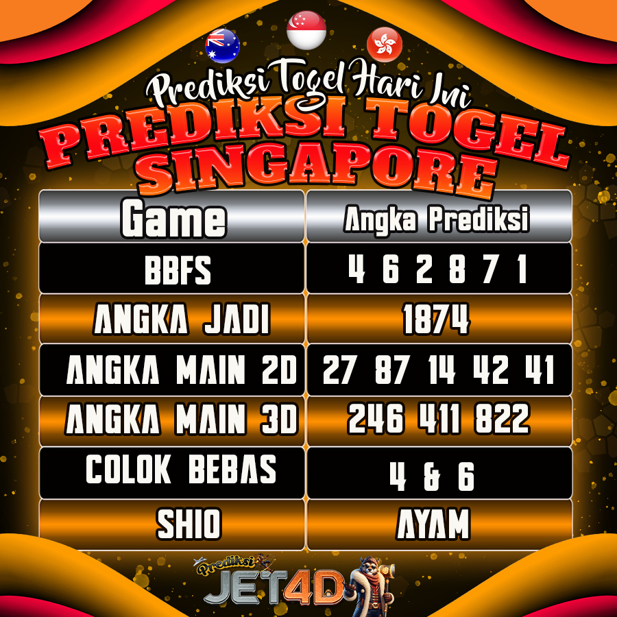 Selamat datang di Prediksi Togel Jet4D, situs terpercaya untuk para pecinta angka! Hari ini, kita akan bahas seputar Togel Singapore (SGP) – salah satu pasaran togel paling bergengsi dan diminati di Asia.