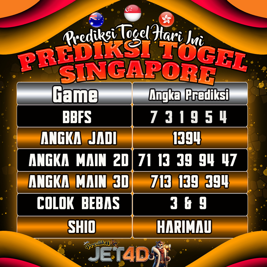 Selamat datang di Prediksi Togel Jet4D, situs terpercaya untuk para pecinta angka! Hari ini, kita akan bahas seputar Togel Singapore (SGP) – salah satu pasaran togel paling bergengsi dan diminati di Asia.